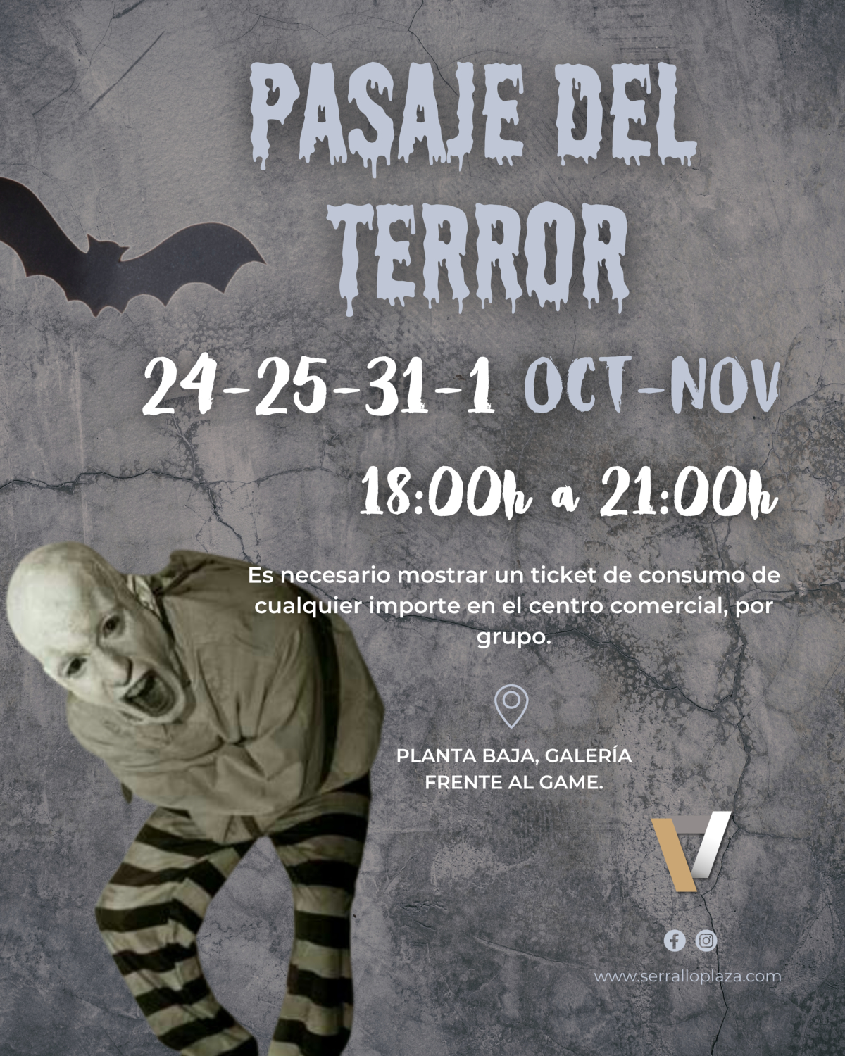 Eventos y PromosSerrallo Plaza2025-10-22T11:59:11+00:00 Próximos Eventos 6:00 PM Zona de Restauración octubre 31, 2025 Talleres Terroríficos 6:00 PM Planta Baja, frente a GAME octubre 24, 2025 Pasaje del Terror